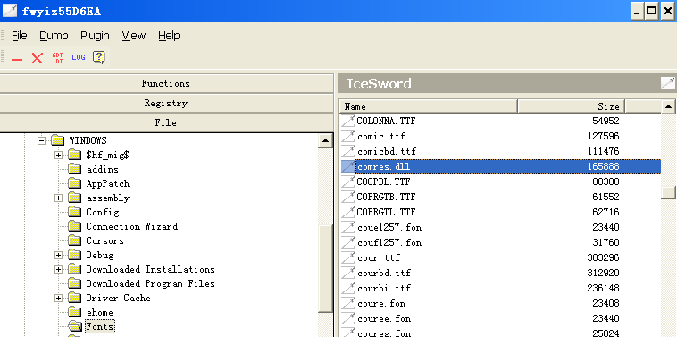 以下几个病毒程序用IceSword强制删除。至于被病毒替换过的系统程序comres.dll、verclsid.exe,删除后,再从dllcache目录下拷回system32目录即可。