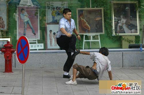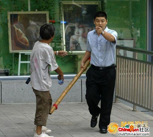 杂种,看起来人摸人样的!是不是在解放碑的某影楼旁?棒棒也是人啊,就这么有碍市容?要是遇到我看见他打人,非它妈扁他一顿不可,打不赢也要打!