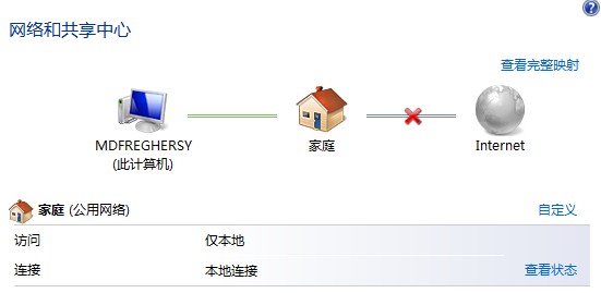 不能上网时电脑网络和共享中心里图标: