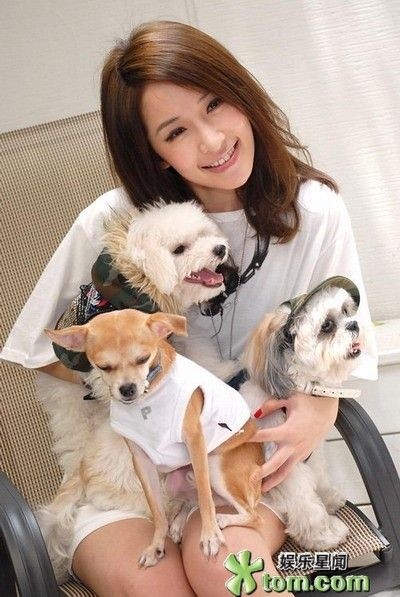 左下elva的狗狗gimi,左上蔡依林的狗狗,右为孙燕姿的狗狗