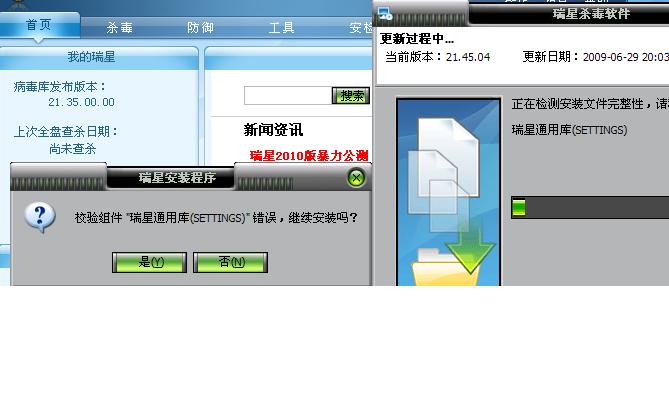 我的瑞星当前版本为21.44,今天手动升级时提示出错,:kaka4: 详见截图: