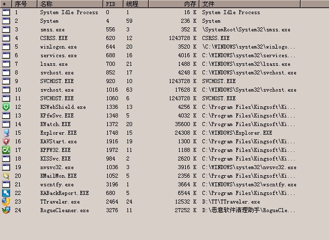 这个SVCHOST本来应该只有4个,但是现在多出来了。那个KINGSOFT是用瑞星无解然后安的金山毒霸,安全。进程估计是病毒,但用瑞星查不出来