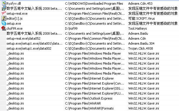 用瑞星杀毒软件杀没毒,但用Dr.Web大蜘蛛反病毒扫描出来一大堆,不知道有没有搞错.请大家鉴别一下!