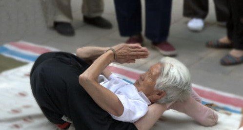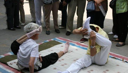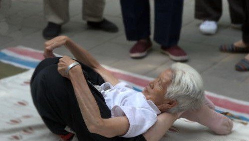 组图:八旬老妇街头秀绝技 高难动作叫板瑜伽