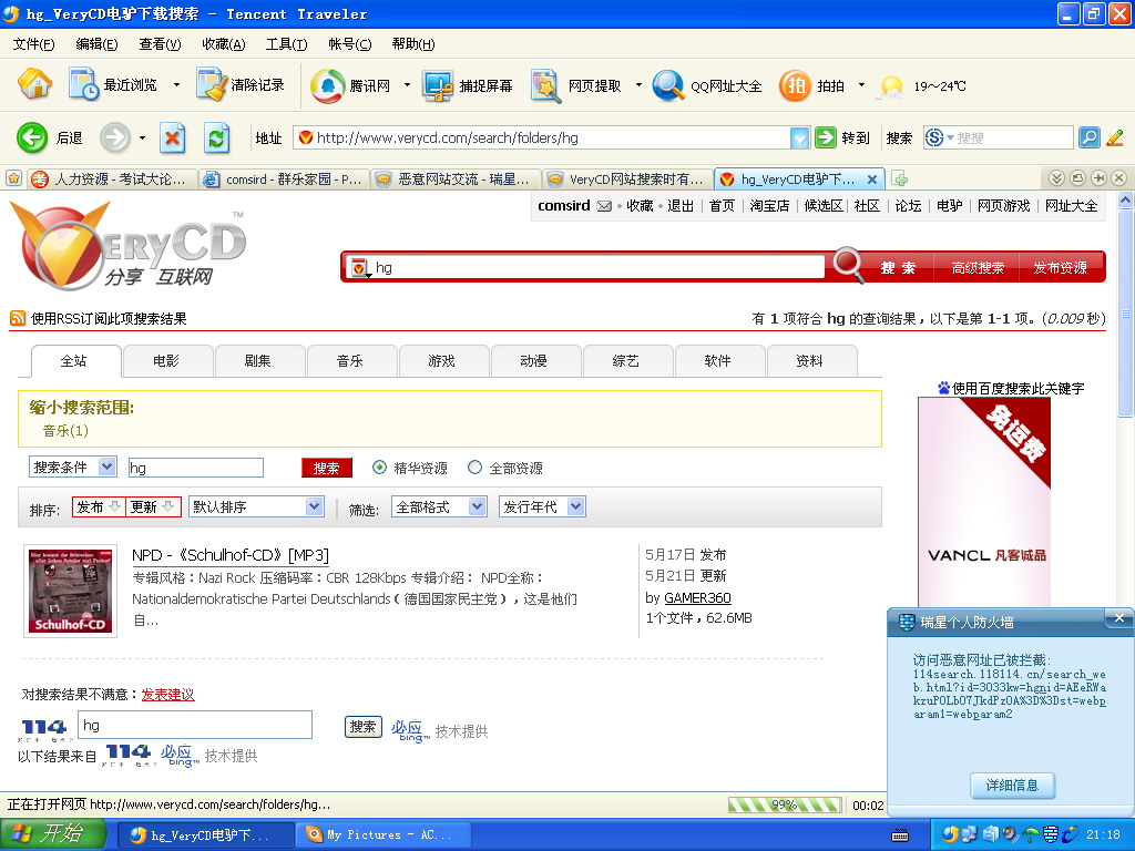 http://www.verycd.com只要点击搜索,就会弹出提示哦,好怕怕哦,这个站都有危险了