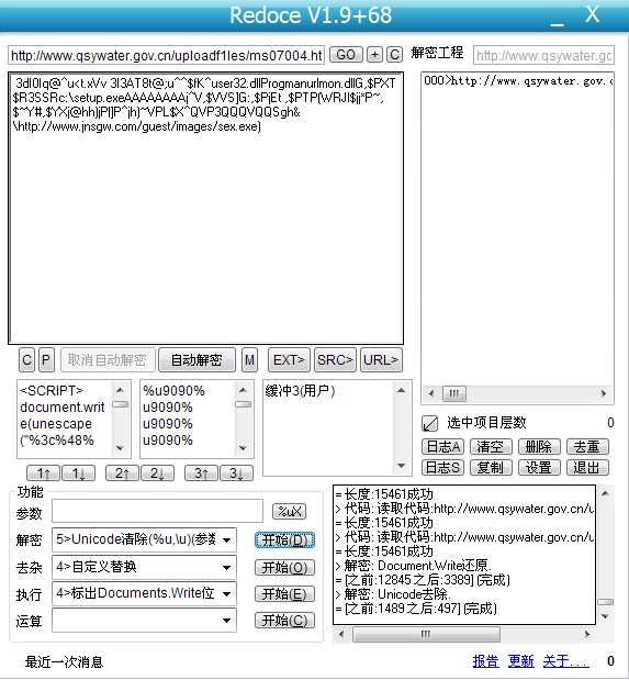 关于:hxxp://www.qsywater.gov.cn/uploadf1les/ms07004.html解密的日志(全体输出 - 2):