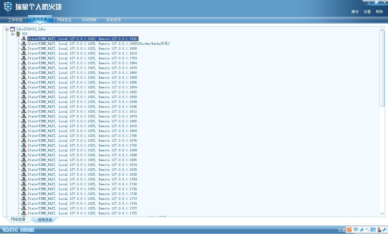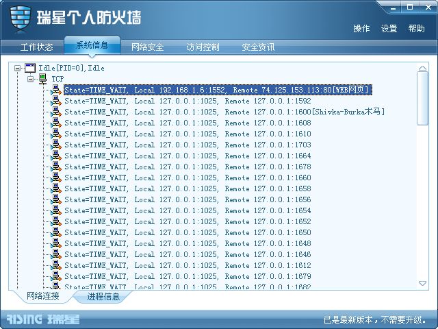 ,其他信息就不记得了),网络就被瑞星切断了(应该是瑞星断的吧)。我以前也没遇到过这样的情况,