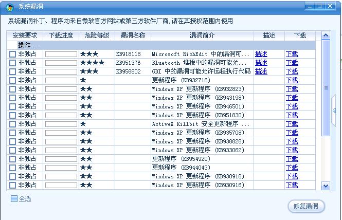 扫描出来有22个漏洞,然后全部修复完成后~~重起电脑再扫描一次,刚刚的漏洞又有了!