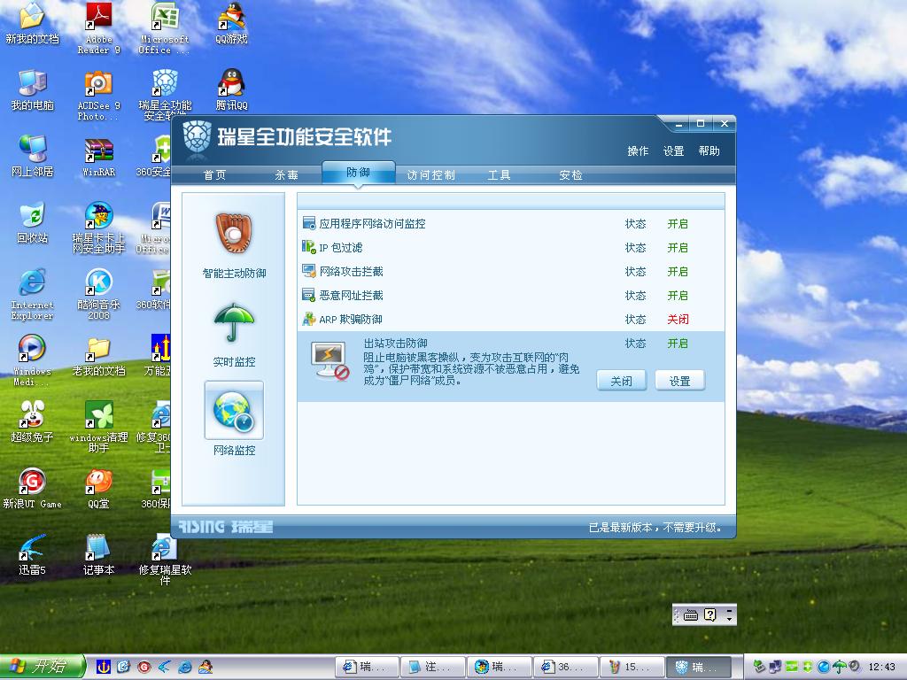 我再重新开启瑞星的那些功能,重启后又关闭了,后来卸了360试了试,瑞星回复正常。郁闷
