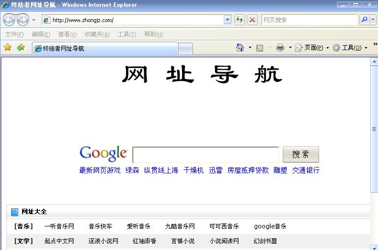 昨晚我电脑安装了魔兽世界单机板的游戏,它自带了一个"终结者网址导航",把我的主页给改了.我打开自己的IE属性发现还是自己设置的主页地址,可是一打开IE就自动进入了"终结者网址导航"网页,用卡卡和360都查不出来?