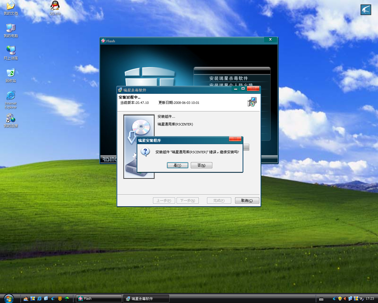 http://bbs.ikaka.com/showtopic-8547280.aspx专杀工具查杀完了,再去安装瑞星。
