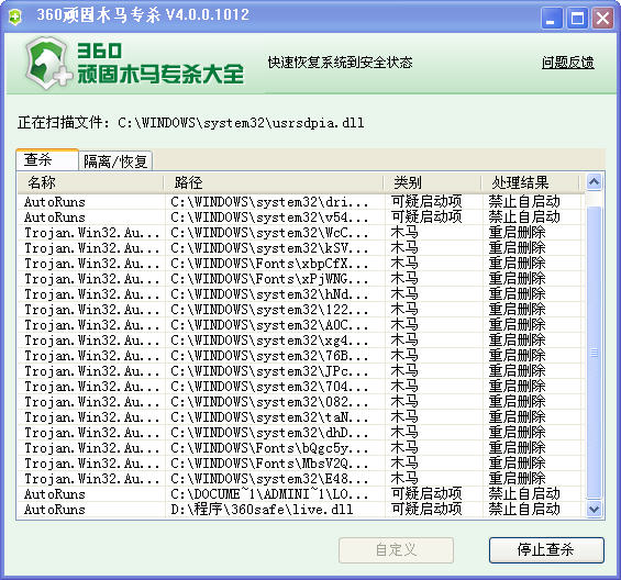 中毒了,中毒现状如附件如示,RAR文件不断的自动压缩,和文件夹里总是desktop_ini. 全部的杀毒软件都用了,装了N次系统没用。瑞星总出现开不了!