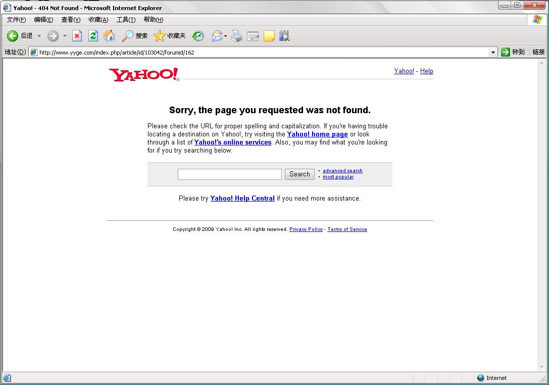我记得原来404的提示不是这样的,今天不知道为什么,404就和yahoo联系上了...