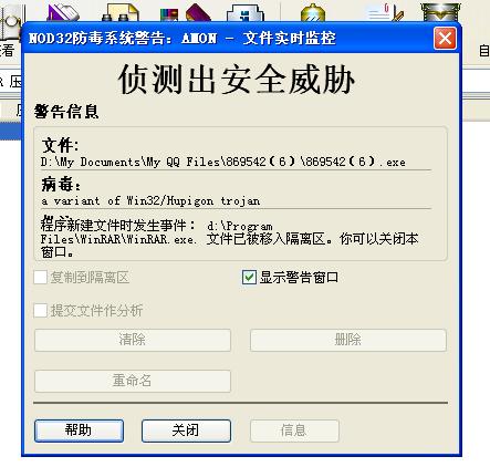 查到..检测到a variant of win32/Hupigon trojan