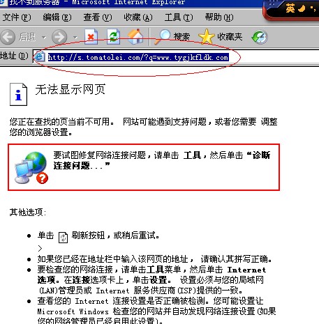我在IE地址栏里输入www.tygjkfldk.com(无此网站)结果
