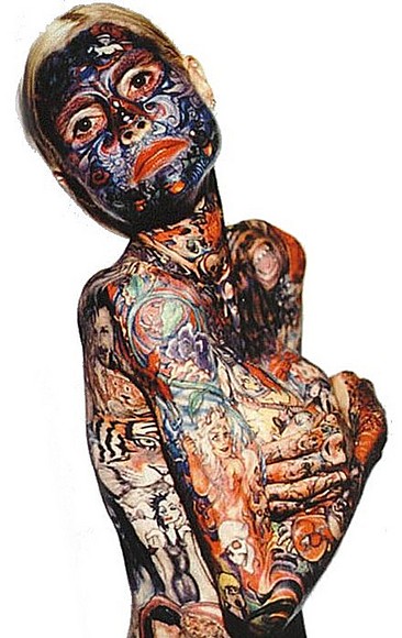 Julia Gnuse,人们眼中的著名的“画报贵妇”。可是,谁能体会她患有先天性的卟啉病,经常性皮肤发疱,以至于最后身上落下无数类似疤的瘢痕。为了盖住这些疤痕,她决定在感染的身体部位刺花纹。10年后,她的经历出现在报纸,杂志上,引起了世人的关注,并荣获了吉尼斯世界记录。