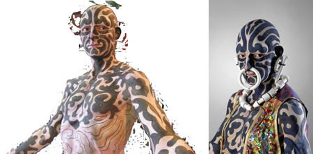 Etienne Dumont是日内瓦一家报社的艺术和文化评论员。他从头到脚都是最具有活力的纹身。他在皮肤下植入硅,是自己有一身布满凸显如角的外观,两个耳垂都有2.7英寸的耳环,塑胶玻璃贯穿鼻子和下唇。他自称其纹身本身就是艺术。