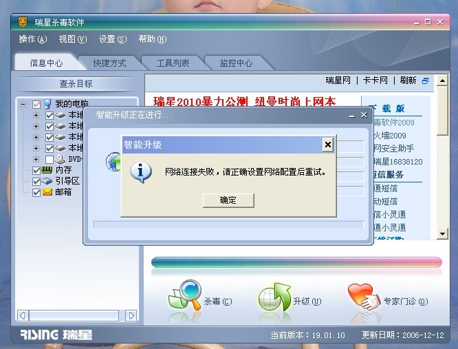 我的瑞星杀毒软件被激活后为什么不能升级?
