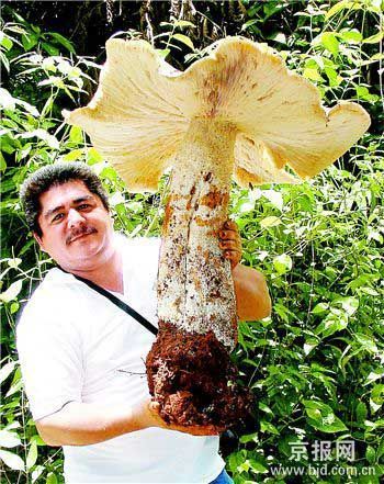 这是2007年6月21日拍摄的一名男子抱着这个大蘑菇的资料照片。