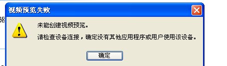 2、双击“资源管理器”或“我的电脑”中的摄像头时跳出警告窗口:“视频预览失败:未能创建视频预览,请检查设备连接,确定没有其他应用程序或用房使用该设备”;