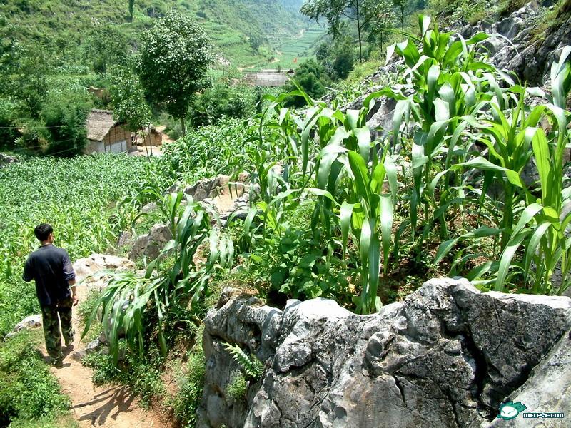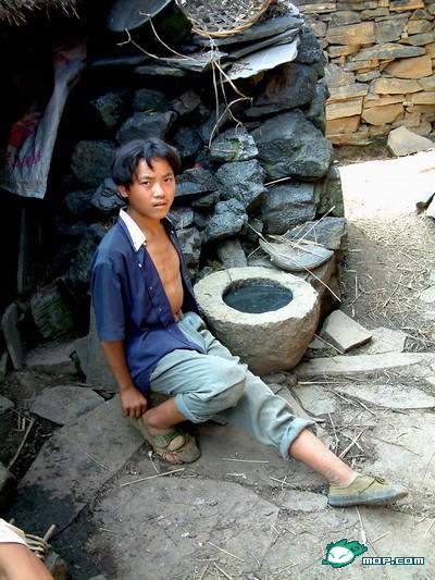 图为大水乡一个汉子正从街上匆匆走过。他赶了两个小时的山路是为了卖点玉米。如果运气好的话,他可能卖得15元现金。除了买两斤盐回家,剩下的钱要攒起来做孩子下学期的学杂费。如果一个暑假攒不够70元,孩子将辍学。