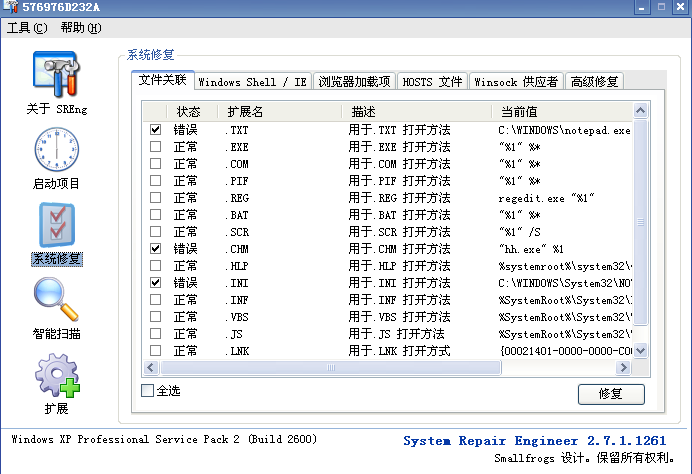 使用System Repair Engineer扫描日志,将日志作为附件上传上来。