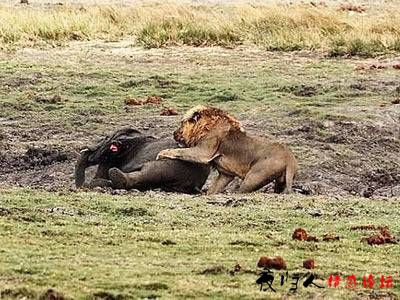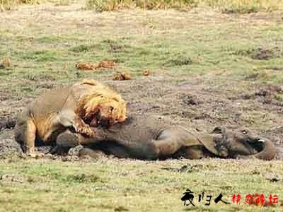 看这狮子饿得..还好小象嫩能咬动...