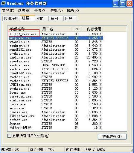 动隐藏掉,查看任务管理器多了几个后缀为-xeex.exe的进程,关掉后马上又有了。断网后用杀毒软件全