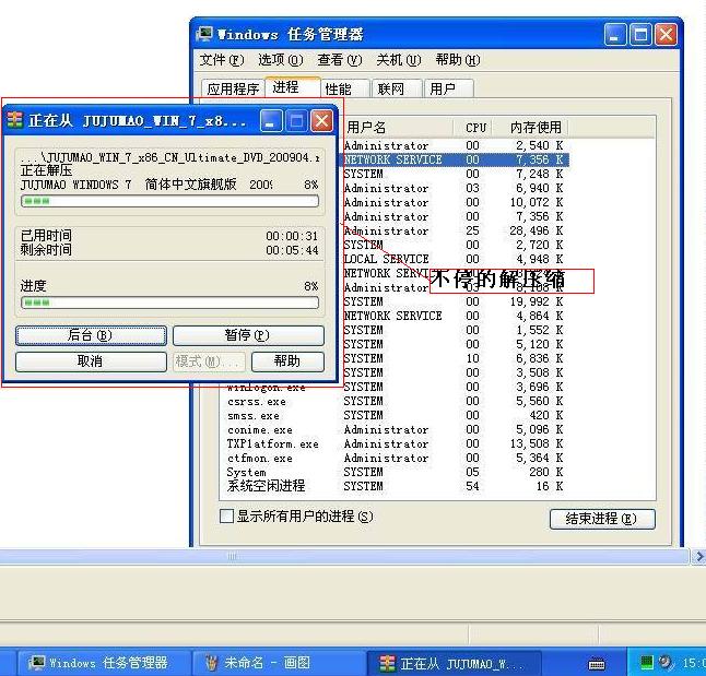 大概一个月前中了这样的一个病毒,它会在后台自动解压硬盘里的所有压缩包,解压完一个压缩包就自