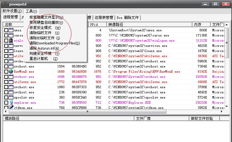 从进程看,存在TXP1atform.exe病毒,此毒感染性极强,但是在c:\windows\system32\drivers\目录创建和此毒同名文件夹,可以抑制此毒的运行。