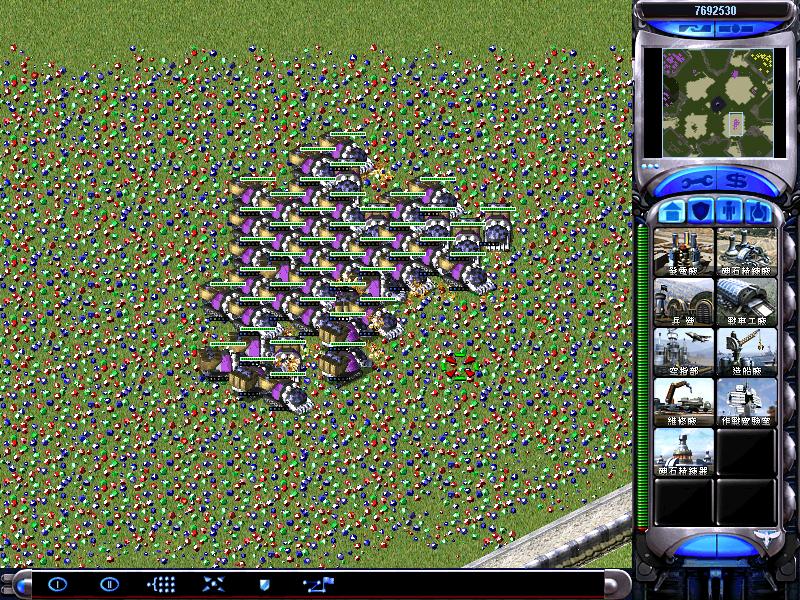 这才几个啊,有一次,我有100多矿车,那个地图也蛮奇怪的,全是宝石没有黄金所以最后全被我采光了,敌人就没有钱了:kaka6: :kaka12:
