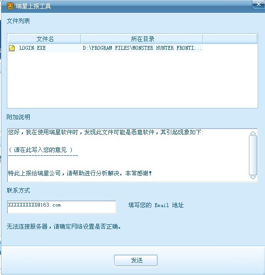 如题,即使联网中也是同样情况,不管怎样都显示无法上报。家里使用路由器登录的,也许是路由器封锁了某一段IP地址?这在BT下载和驴子中见过,不知道瑞星用的端口,求解