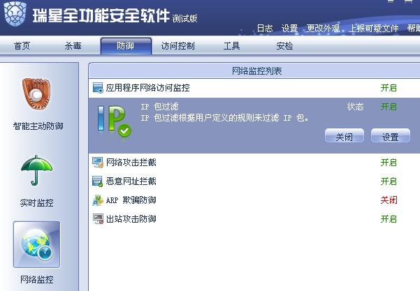 全功能的特点是开机是只有一把小绿伞,没有防火墙的图标!防火墙集成在软件里面了,节省了电脑的资源占用!