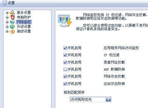 ARP欺骗防御家用电脑一般不需要开启,开着更占内存。出站攻击防御建议开着,防止电脑成为黑客的“肉鸡”