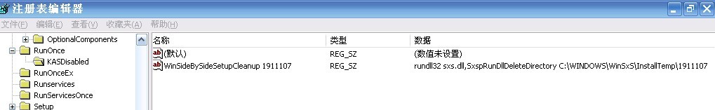 WinSideBySidesetupCleanup 1911107 REG-SZ rundll32sxs.dll,SxsprunDllDeleteDirectory C:\WINDOWSwinsxs\InstallTemp\1911107)里有这个