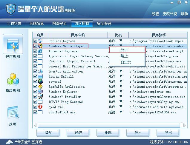 今天我装了个手机配套软件,可是在瑞星提示有进程加入时,被我误点拦截,现在想把它解锁,请问应该怎么操作?很急,非常感谢!