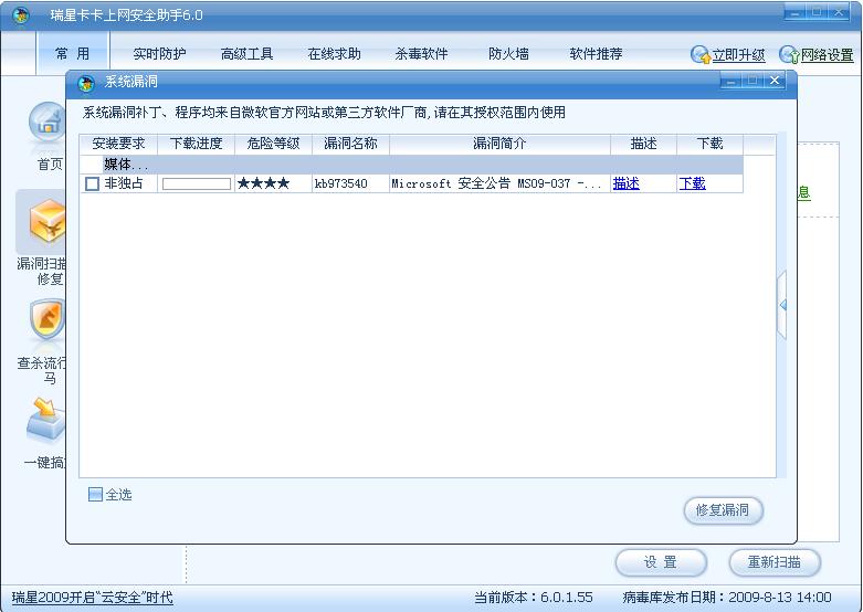 http://bbs.ikaka.com/showtopic-8654333.aspx 版主也说了,你把你的漏洞描述清楚啊!否则是没有办法解决的。如果是office漏洞那先看看你安装的office版本和补丁是否相对应。