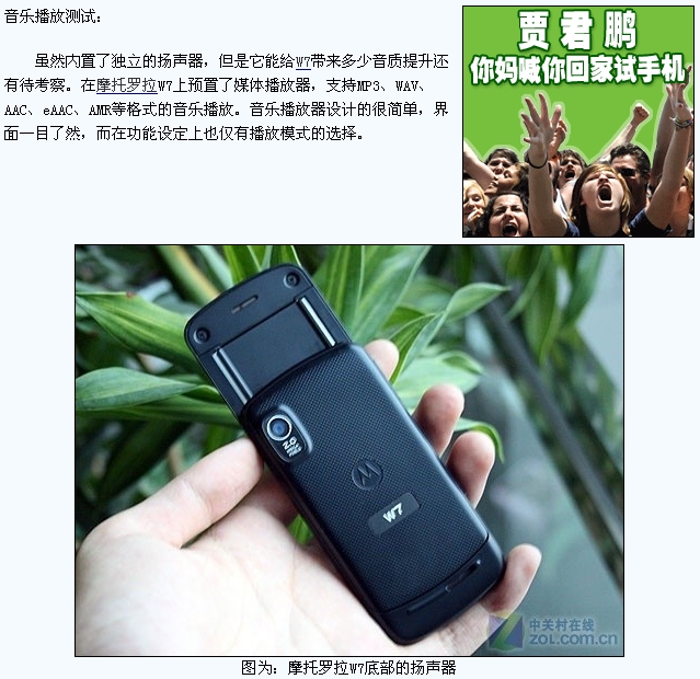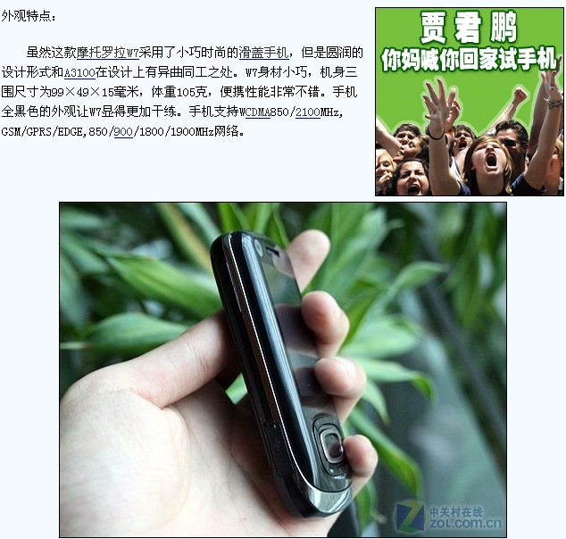WCDMA好玩动感手机 摩托罗拉W7首发评测
