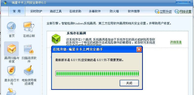 可否提供一下卡卡目前版本以及扫除的漏洞的截屏图像。