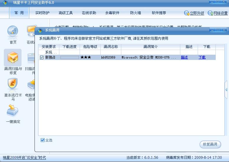 卡卡升级到6.0.1.56漏洞扫描kb952069补丁依然打不上。:kaka2: