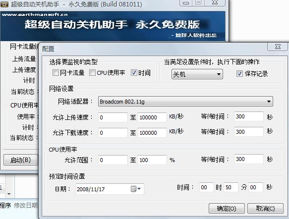 地球人超级自动关机助手一款功能强大的自动关机软件。具有三种不同的工作模式,可以根据网卡的流量、CPU的使用率和预定的时间来执行指定操作,同时可以记录下执行操作的详细情况。软件界面友好,容易操作,无需安装,完全免费。