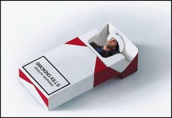 烟盒英文:吸烟所杀。(下面小字:健康警告)