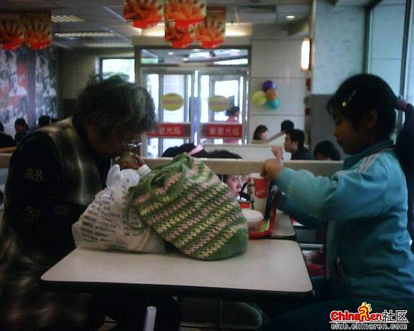 那天去肯鸡 无意间看到个老太太带着自己的孙女也来肯鸡 但不同的是
