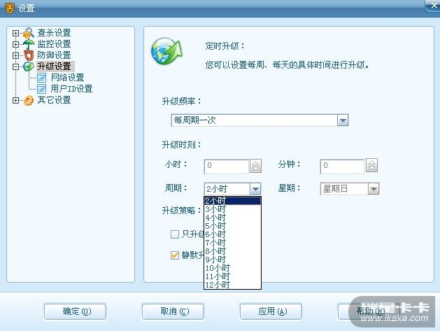 可是我在截屏上没有看到任何关于“定时升级”(每隔X小时)的选择啊?