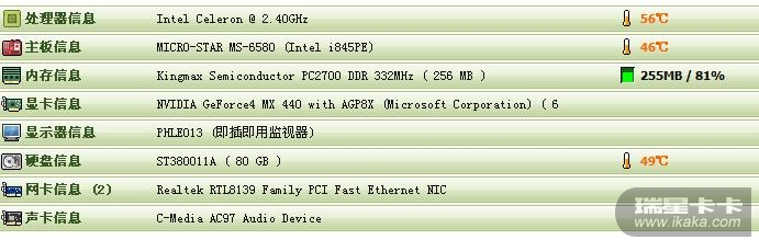 我部电脑用了几乎6年了,配置相比起来相当低。配置如下:CPU赛扬2.4GHz、256MB内存、64MB独立显卡…:kaka4: