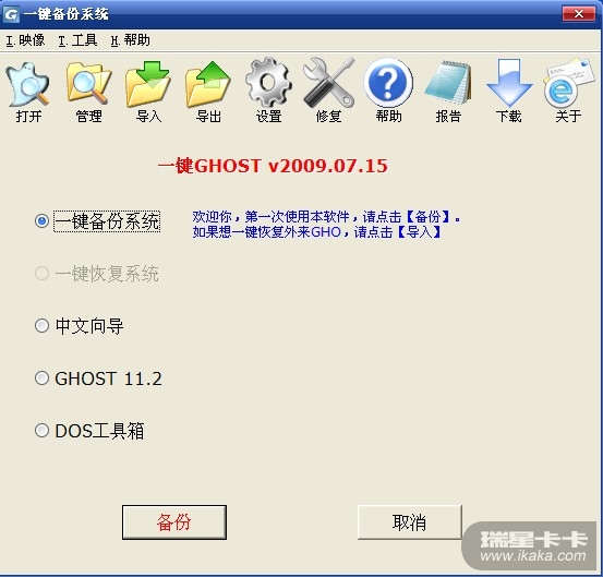选择需要启动的GHOST版本或工具带1KEY的说明是一键备份/恢复,不用手动3、4是手动