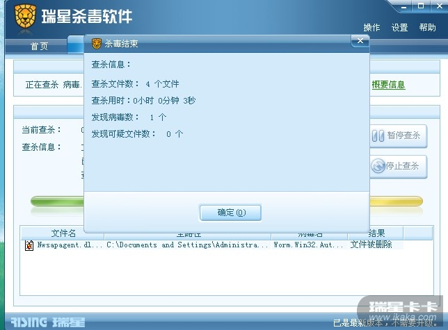 如果第一次查杀发现有病毒,则需要重启动计算机,再杀第二遍。