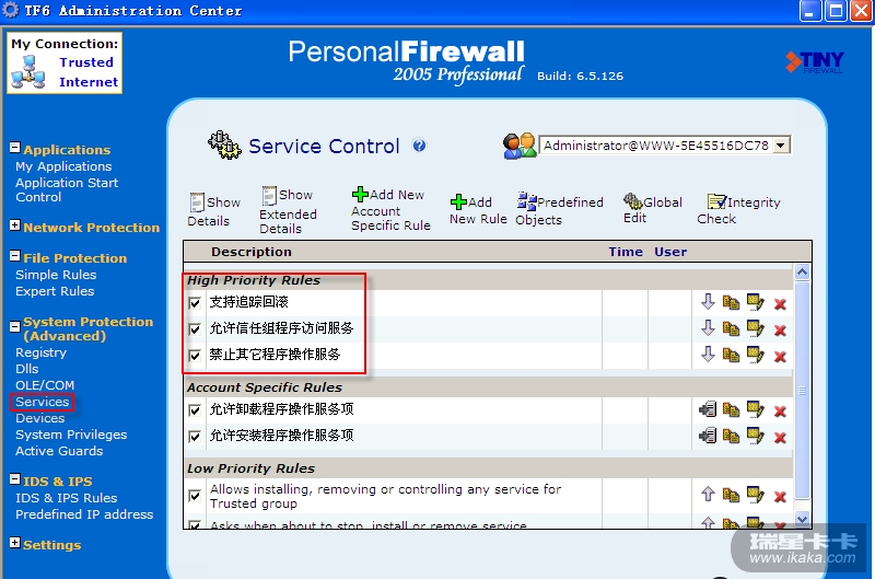 对Trusted组内程序的文件访问、注册表操作、DLL加载、服务操作、系统权限的获取等不加限制。