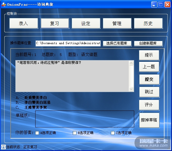 出1.0了,把草稿纸弄好了。嗯,还内置了一个题库(INI格式,方便改),如果要改背景的话,可以到我的空间相册去,里面有不少好图片。