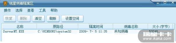 我将ServerNT.exe从隔离区恢复到“我的文档”中用瑞星今天的21.54.10版查杀,无毒!另外我通过瑞星隔离区中提供的“查看病毒资料”功能,看到的竟是无此资料!!!(如图)(又不能上传图片了,哎,瑞星卡卡网,你究竟啥的啦?!……%#¥——*!
